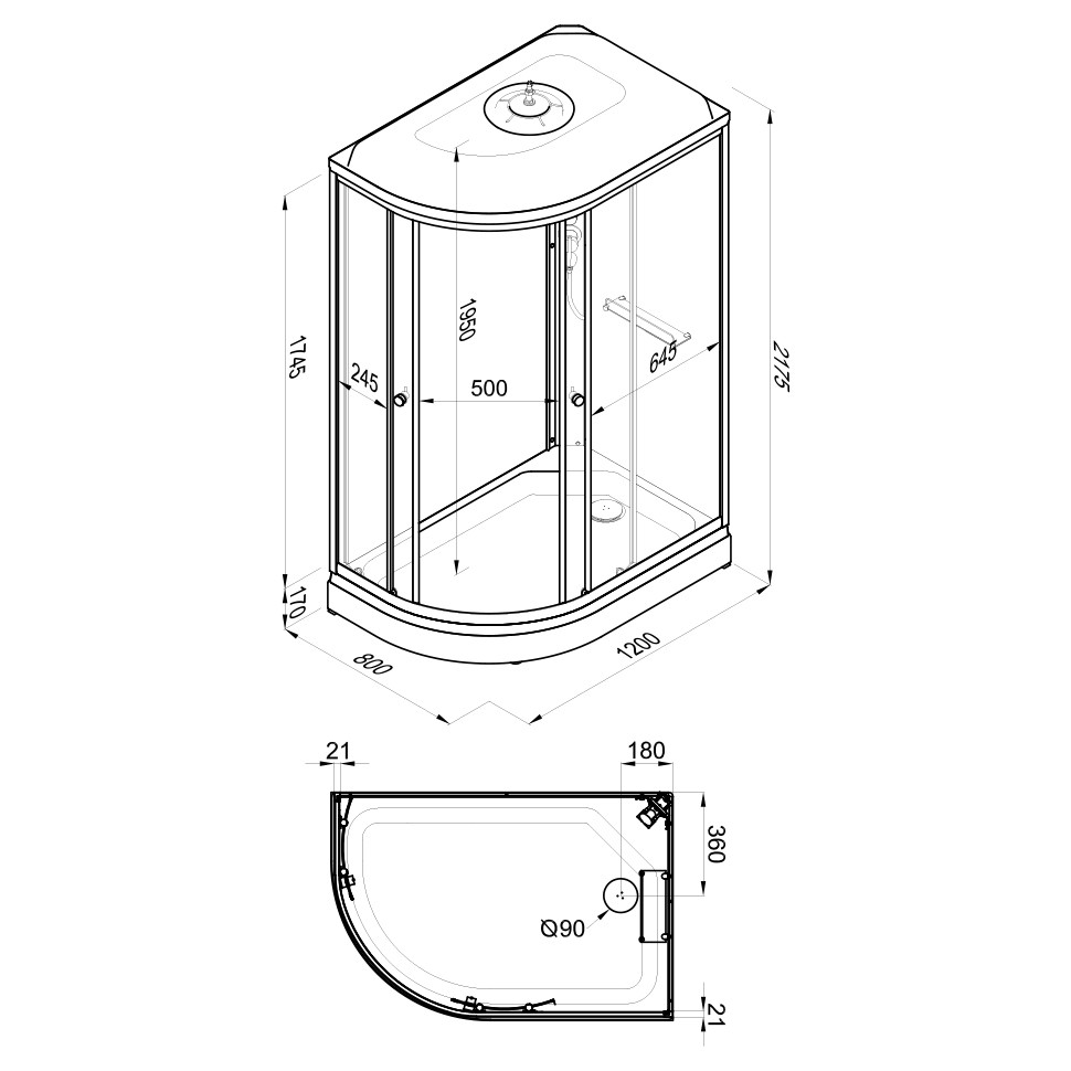 Душевая Кабина Коралл-Лайт 120*80 А Правая