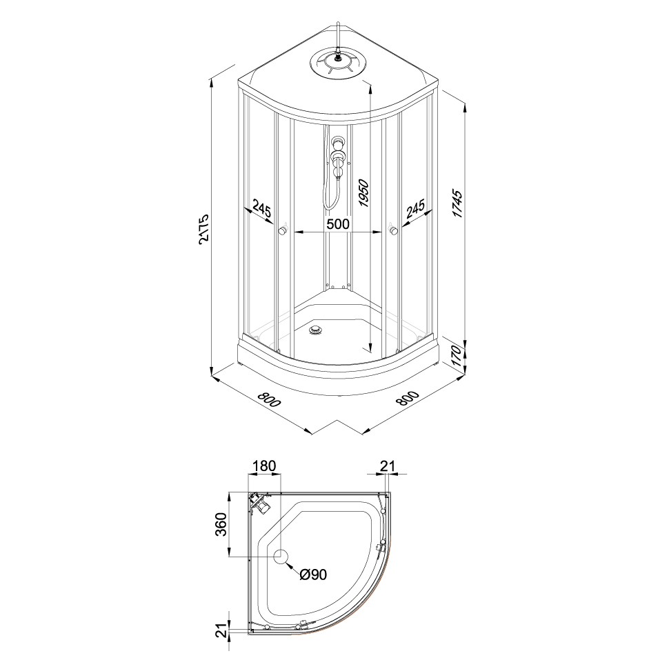 | Сифон душевой кабины | 90 мм |