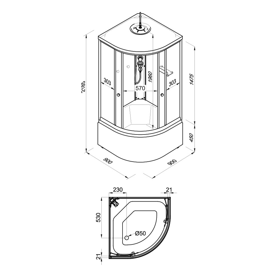 | Сифон душевой кабины | 50 мм (click-clack) |