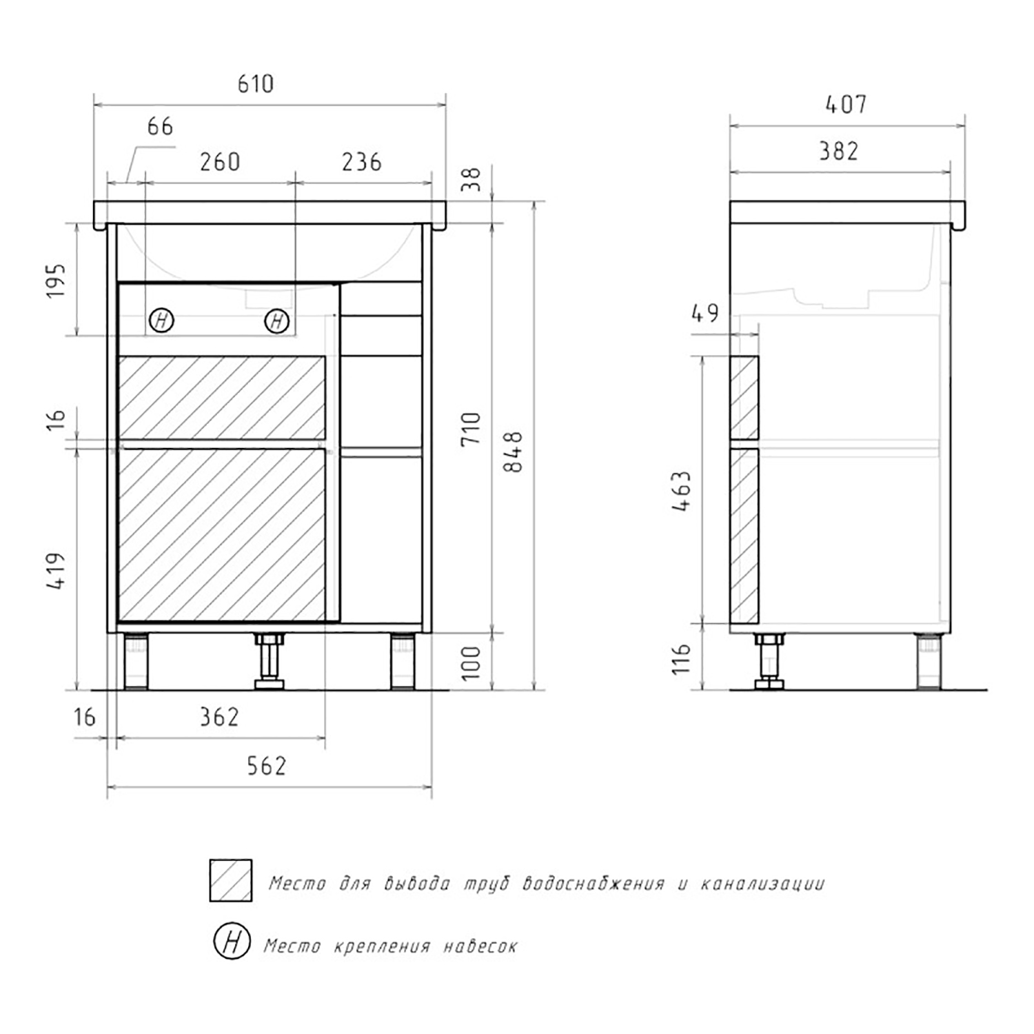 Высота, мм: 848