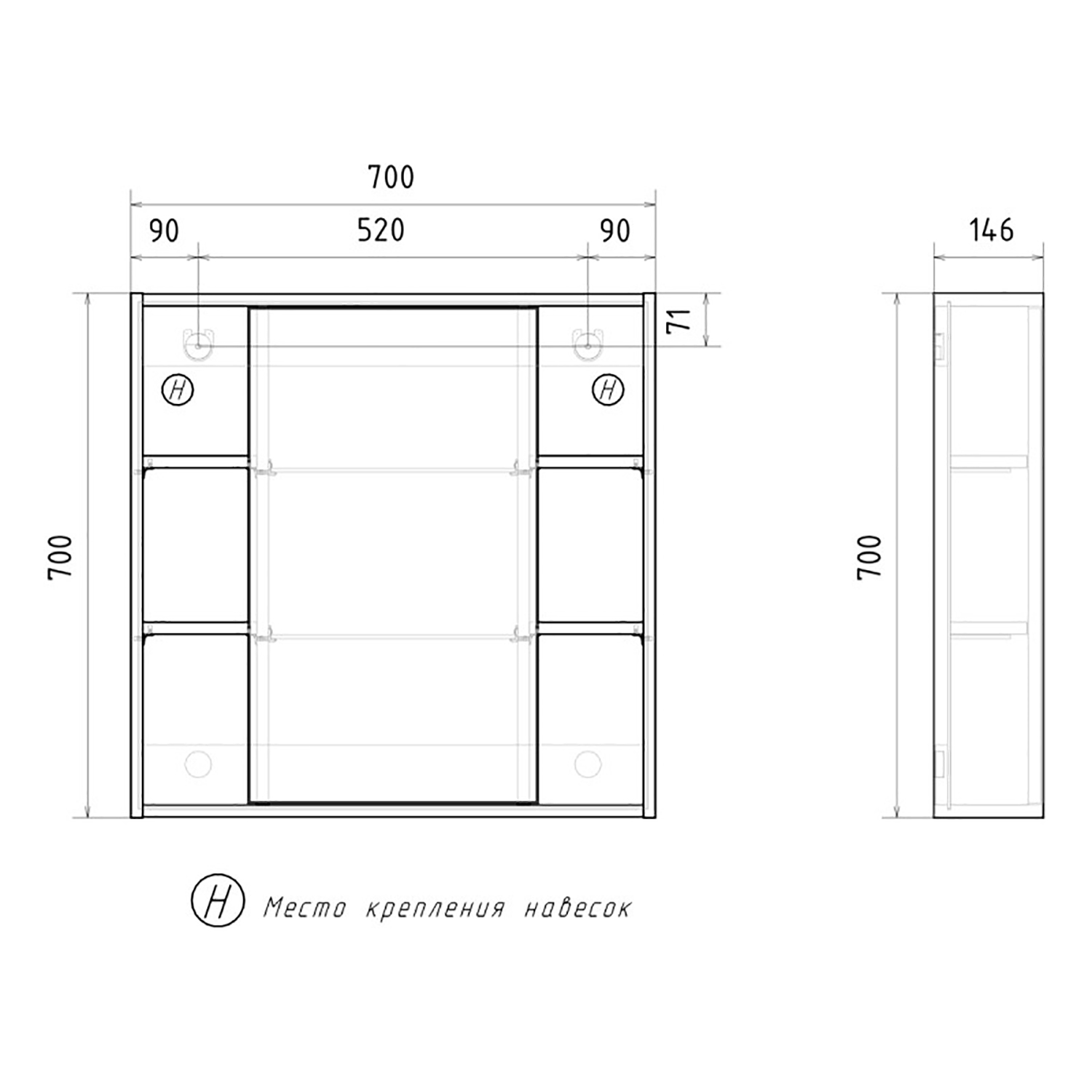 Высота, мм: 700
